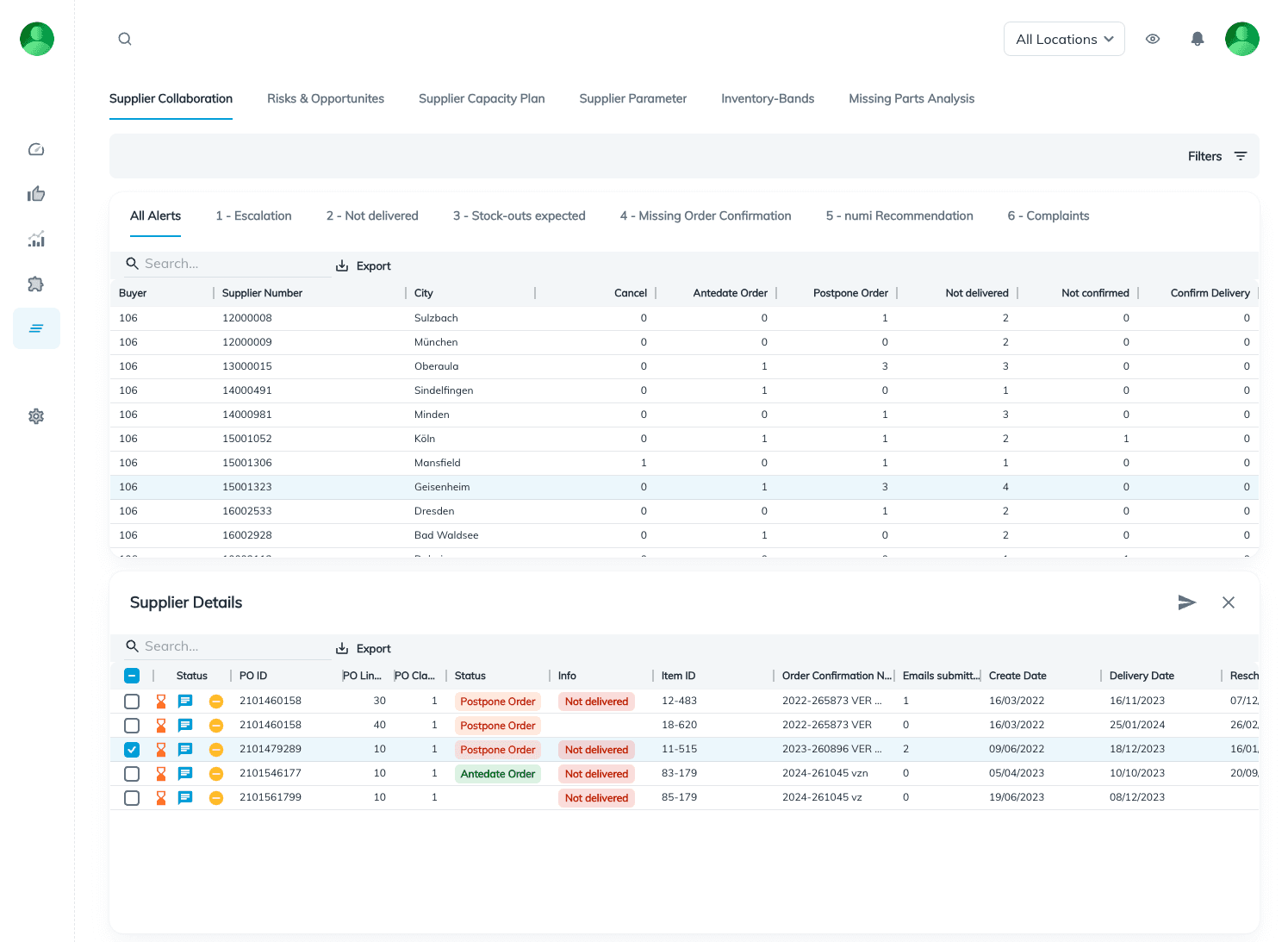 Nutzen Sie numi's Fehlteilanalyse App, um proaktiv Fehlteile für die Produktion zu identifizieren und betroffene Produktionsaufträge sowie Umsatzrisiken zu ermitteln. Erholen Sie sich schneller von Produktionsunterbrechungen.