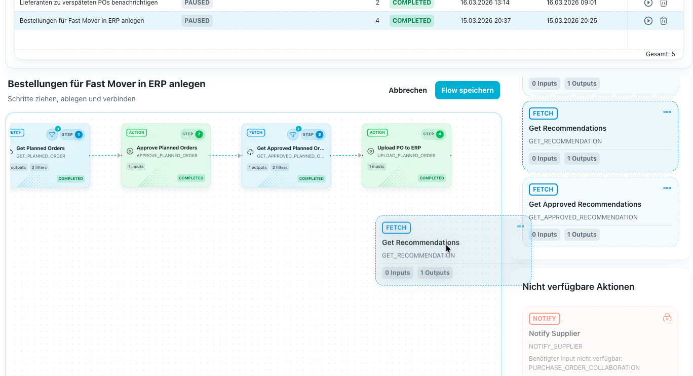Planners see order proposals, parameter changes, and alerts. But the final step is still manual.