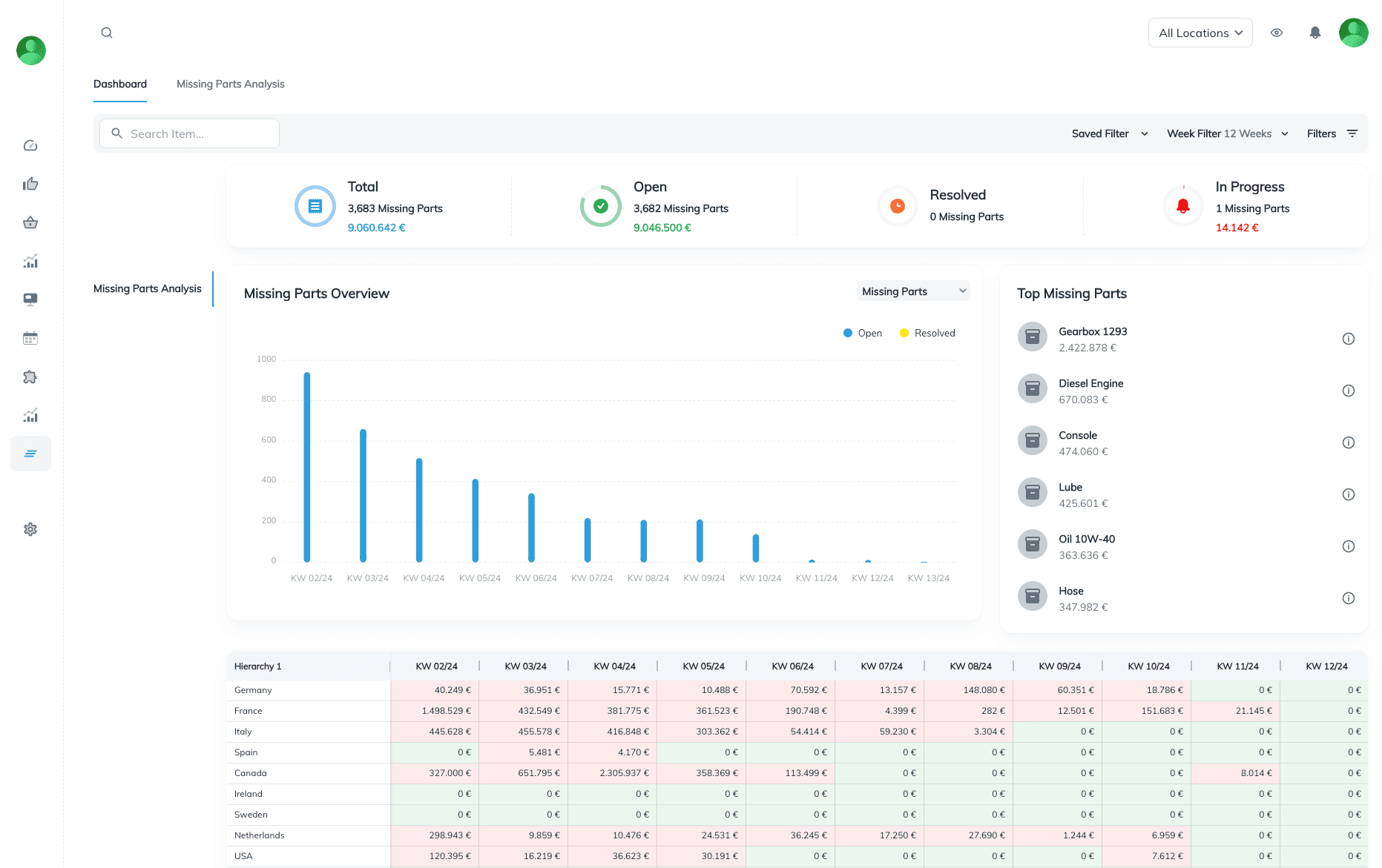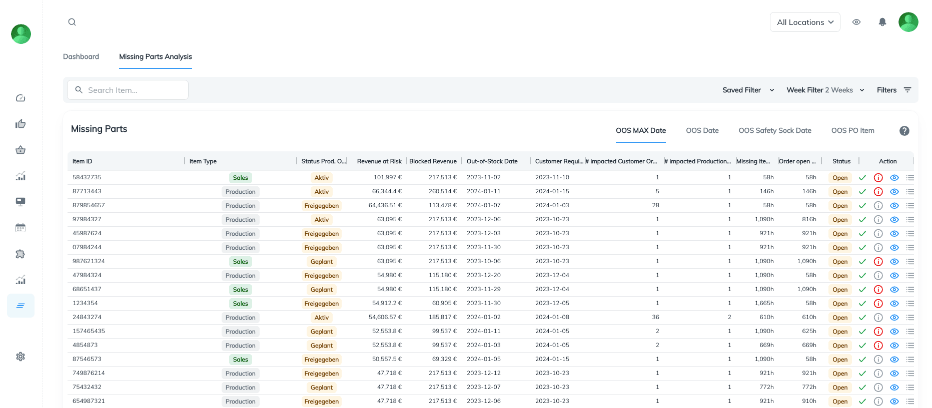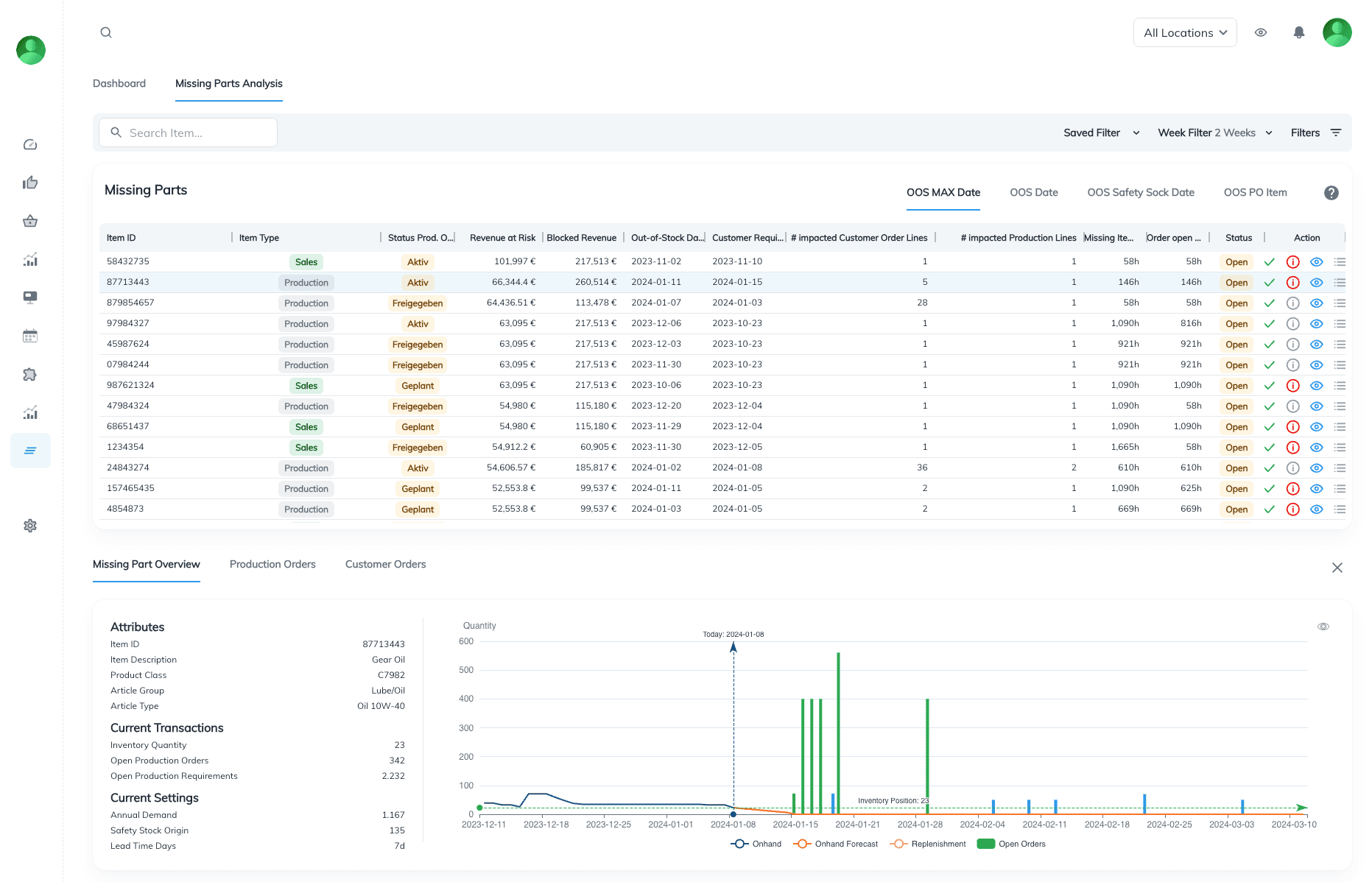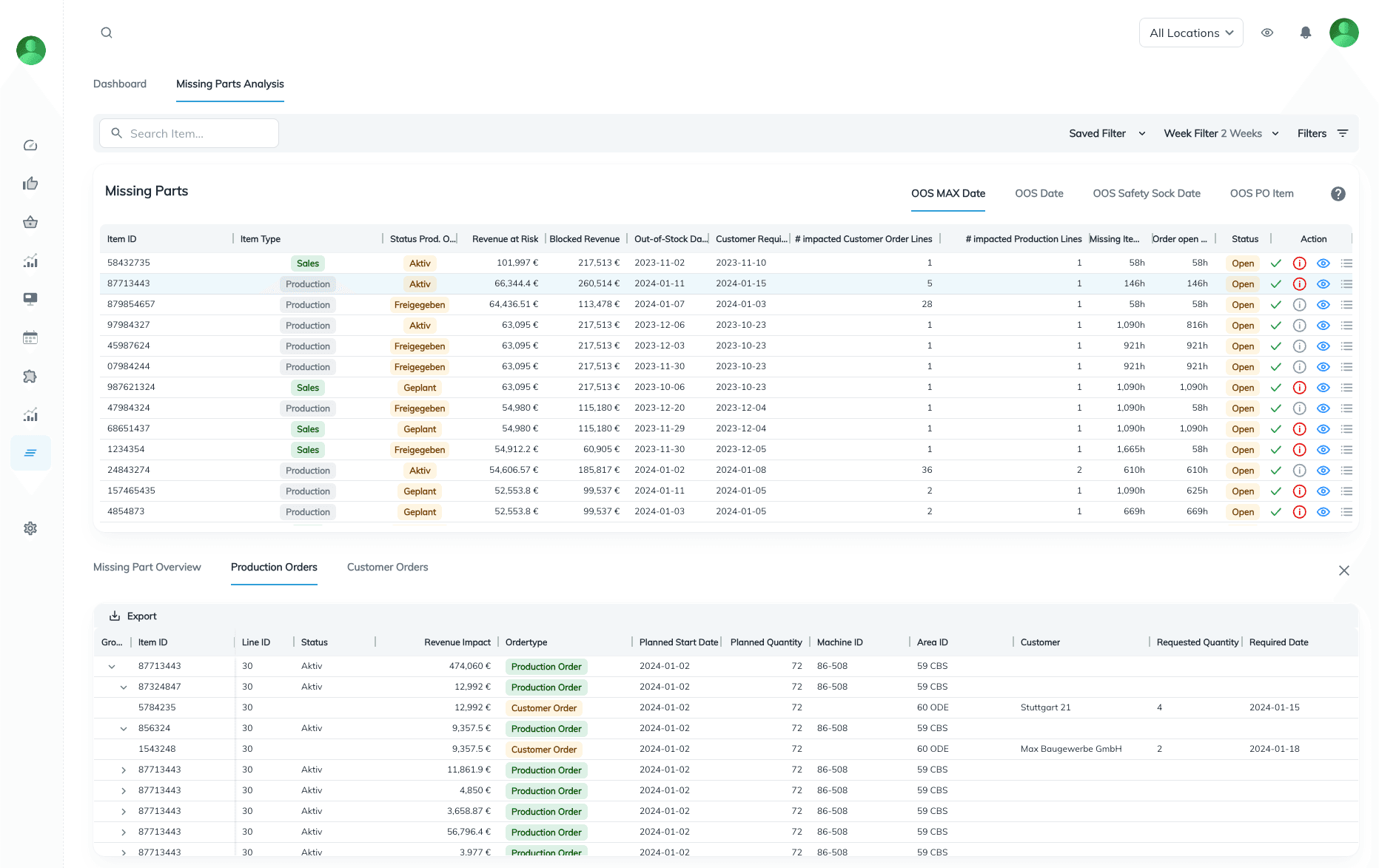 Unlock numi's Missing Parts App to proactively identify missing parts for production, identify impacted production order and impacted and blocked revenue. Recover faster from production disruptions.