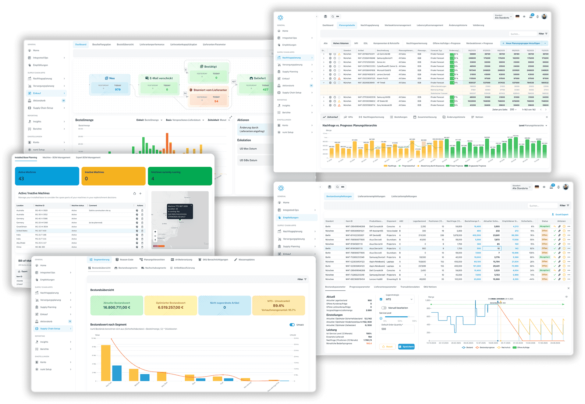 Optimize your stock levels with the Inventory Management Software from numi. Daily recommendations support you in optimizing your ERP parameters and increasing availability. Optimal inventory coverage across your network.