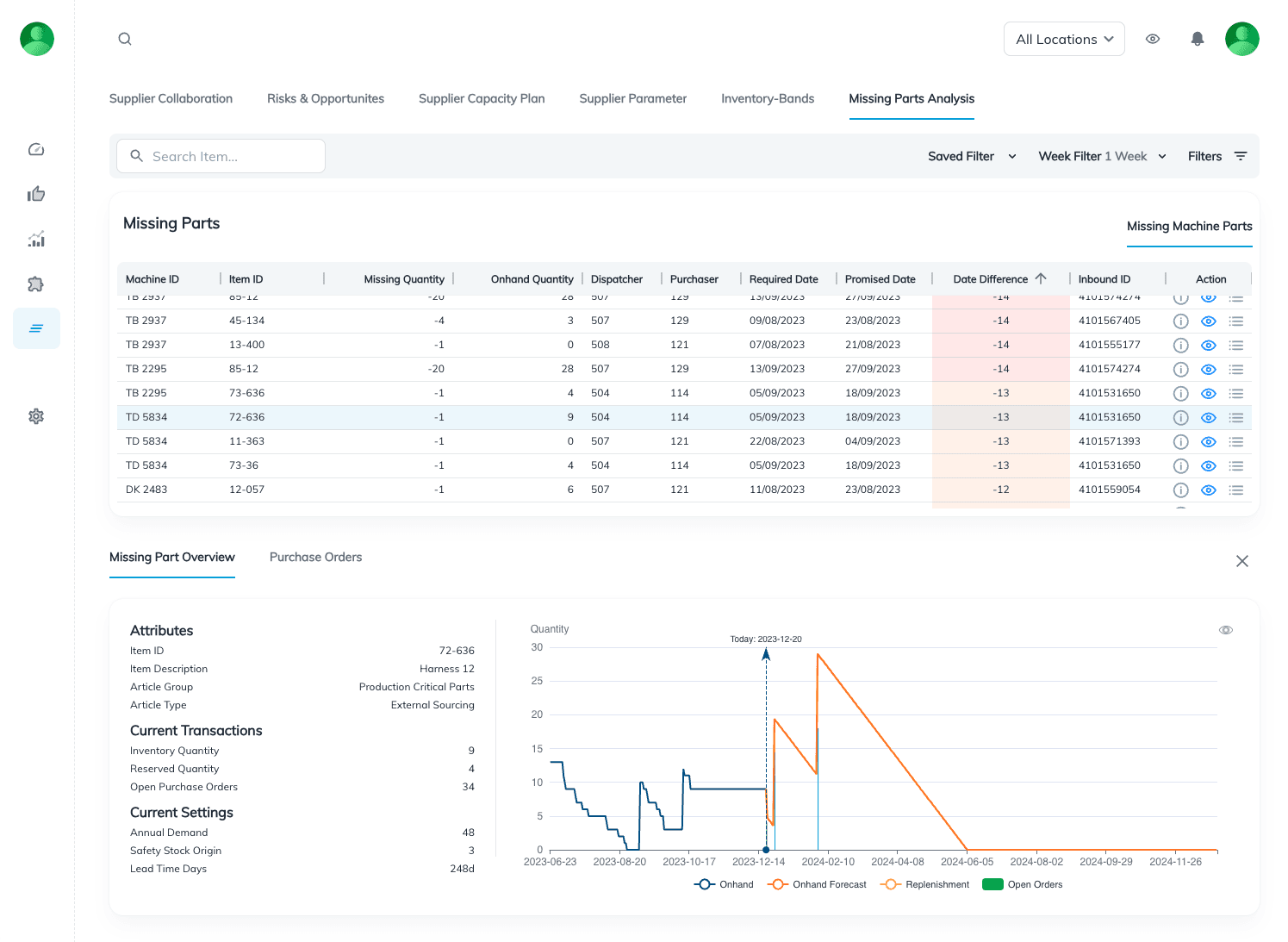 Yes. Teams can track supplier capacities, service behavior, and performance indicators to support proactive decisions.